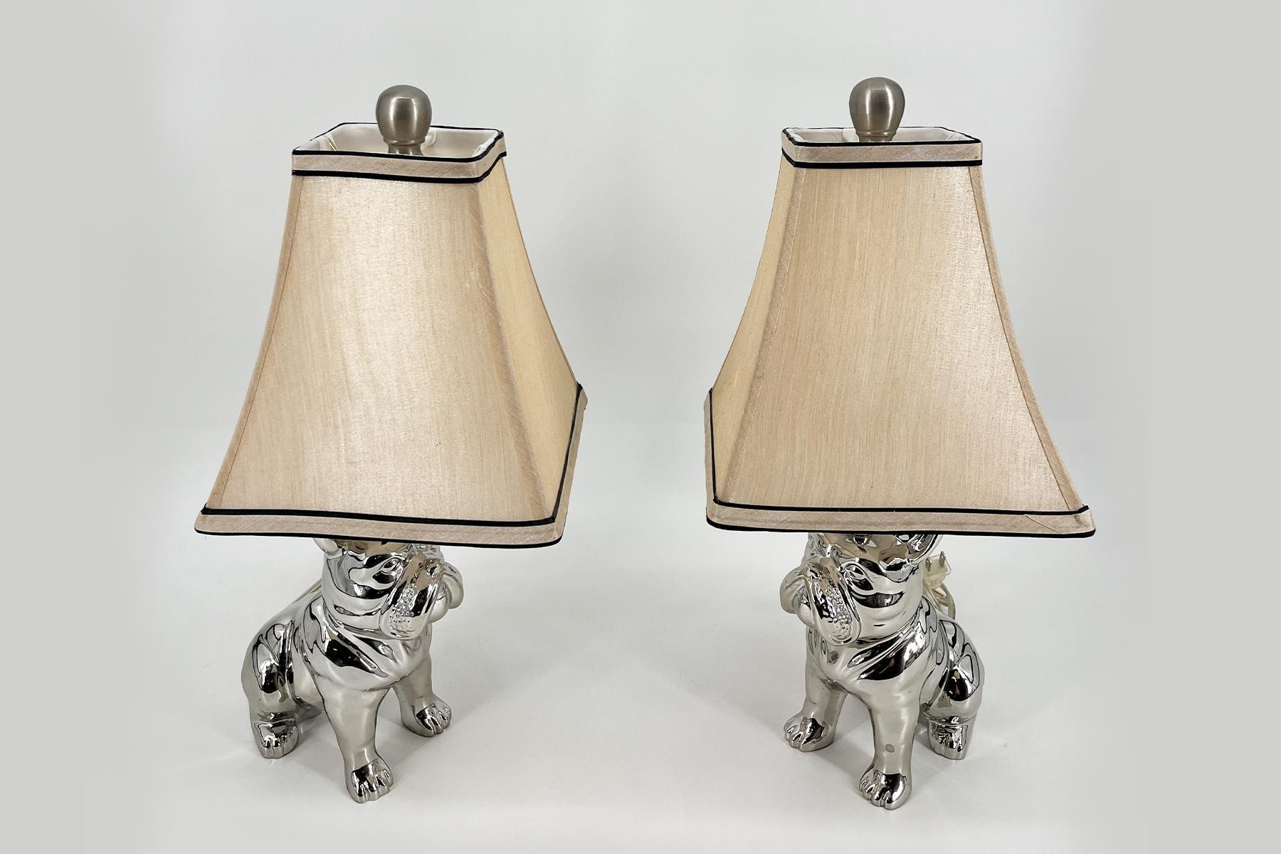 Push button switch, 60 watt, polyresin base w/metallic finish, fabric/linen shade