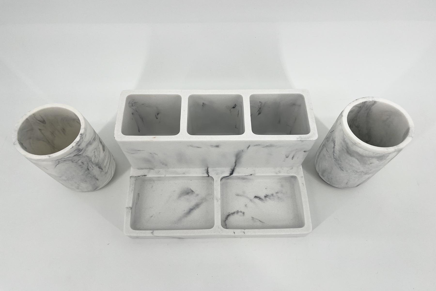 – made from durable resin that mimics the appearance of marble